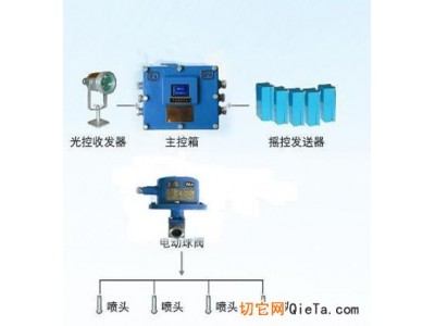 装置主要由主控箱、遥控器、电动球阀、热释光控传感器(发射器)、热释光控传感器(接受器)、水幕、本安电源箱、充电器等组成。